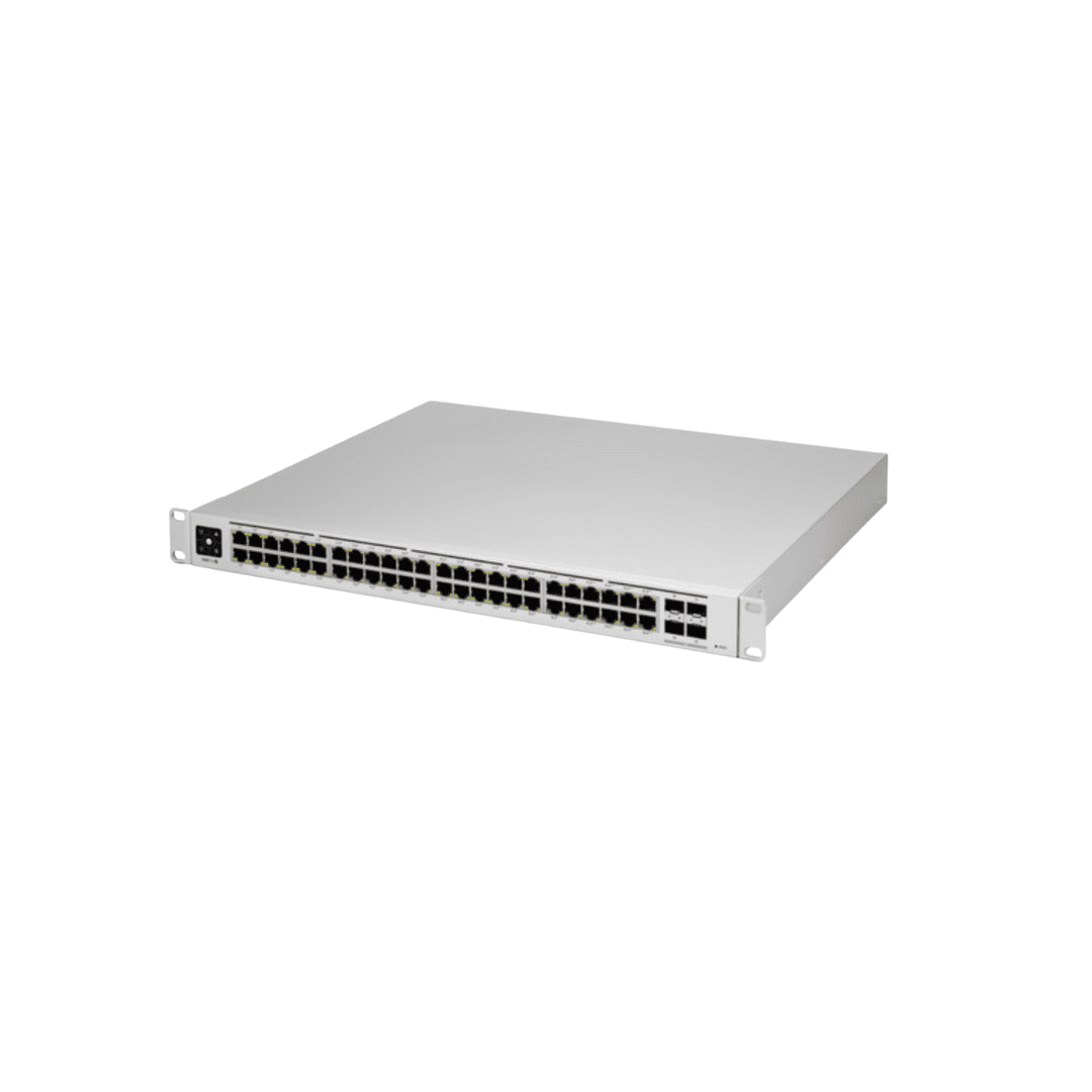 The Dream Machine Pro serves as the recommended router and gateway solution for most church installations. This rack-mountable unit manages IP address assignment (like digital street addresses for each device) and provides the bridge between your local church network (LAN) and the wider internet (WAN). It includes built-in storage capabilities for security camera recordings and multiple connection ports for expansion.